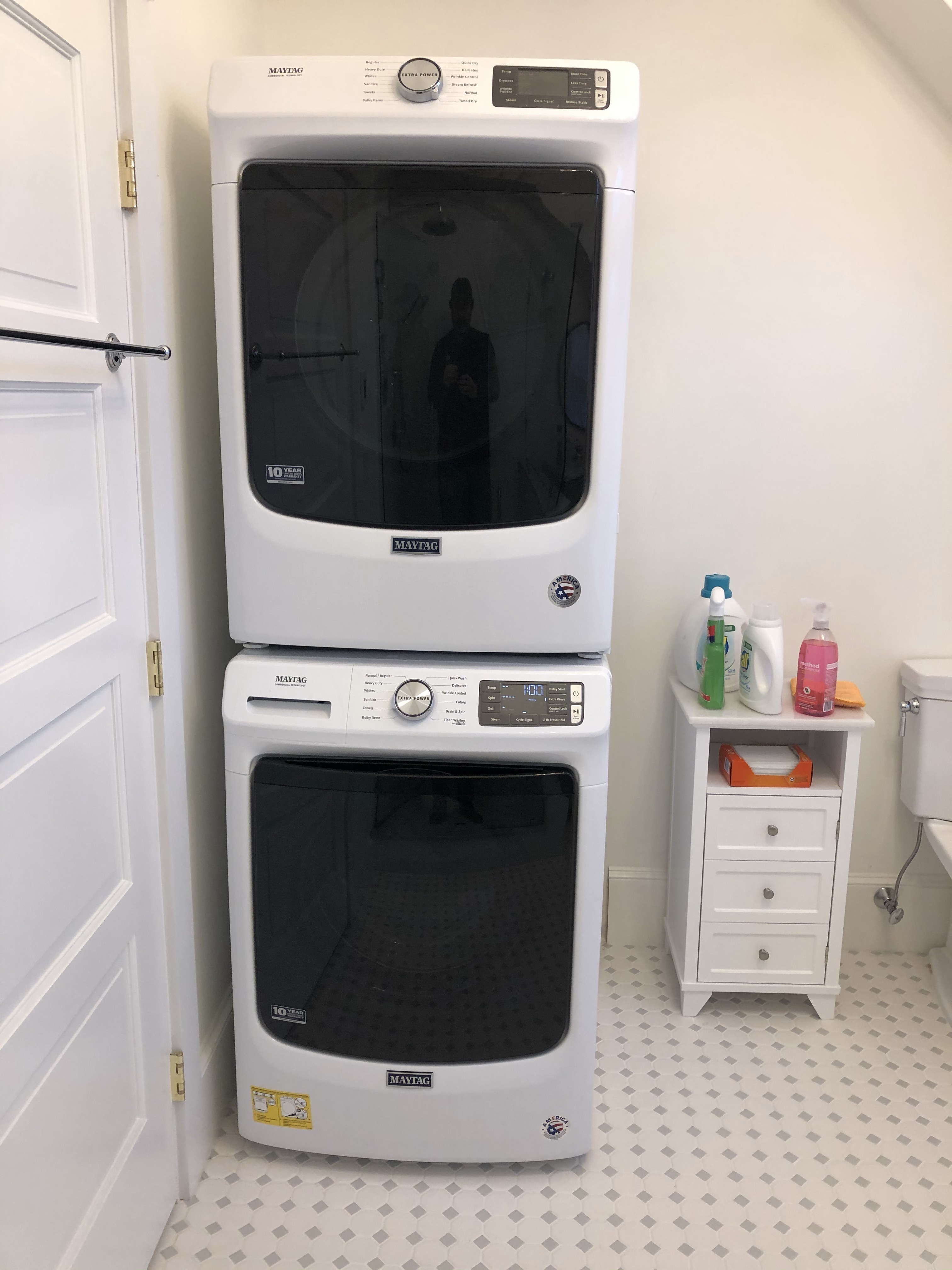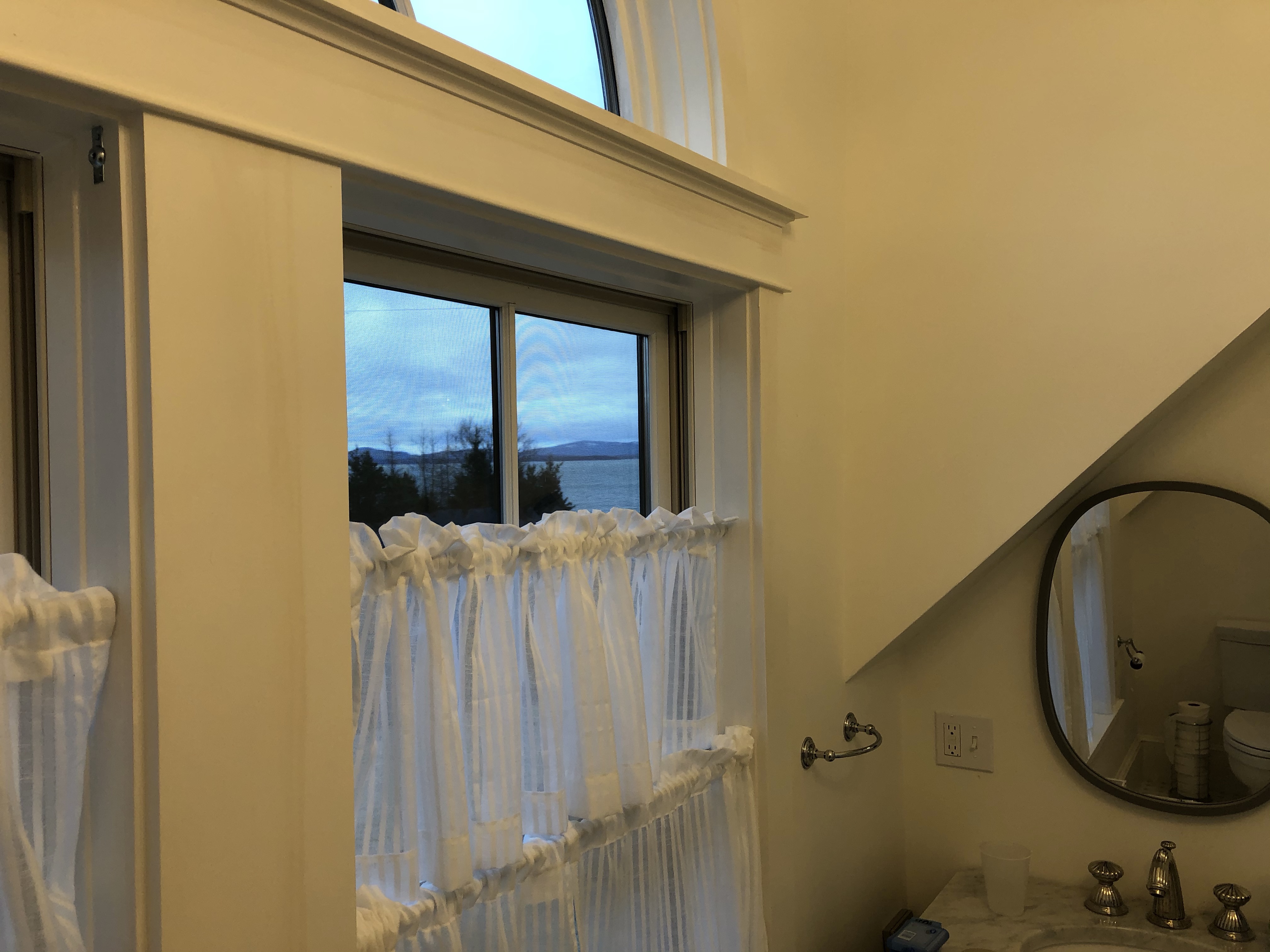 View of the mountains of Acadia across Blue Hill Bay.Large walk in shower with "sunflower" shower head.Overhead light in vaulted ceiling meant to be evocative of a supernova, big bang or other celestial event as a reference to incredibly dark skies and vast star field viewable from the island.Full size washer/dryer ready for action.