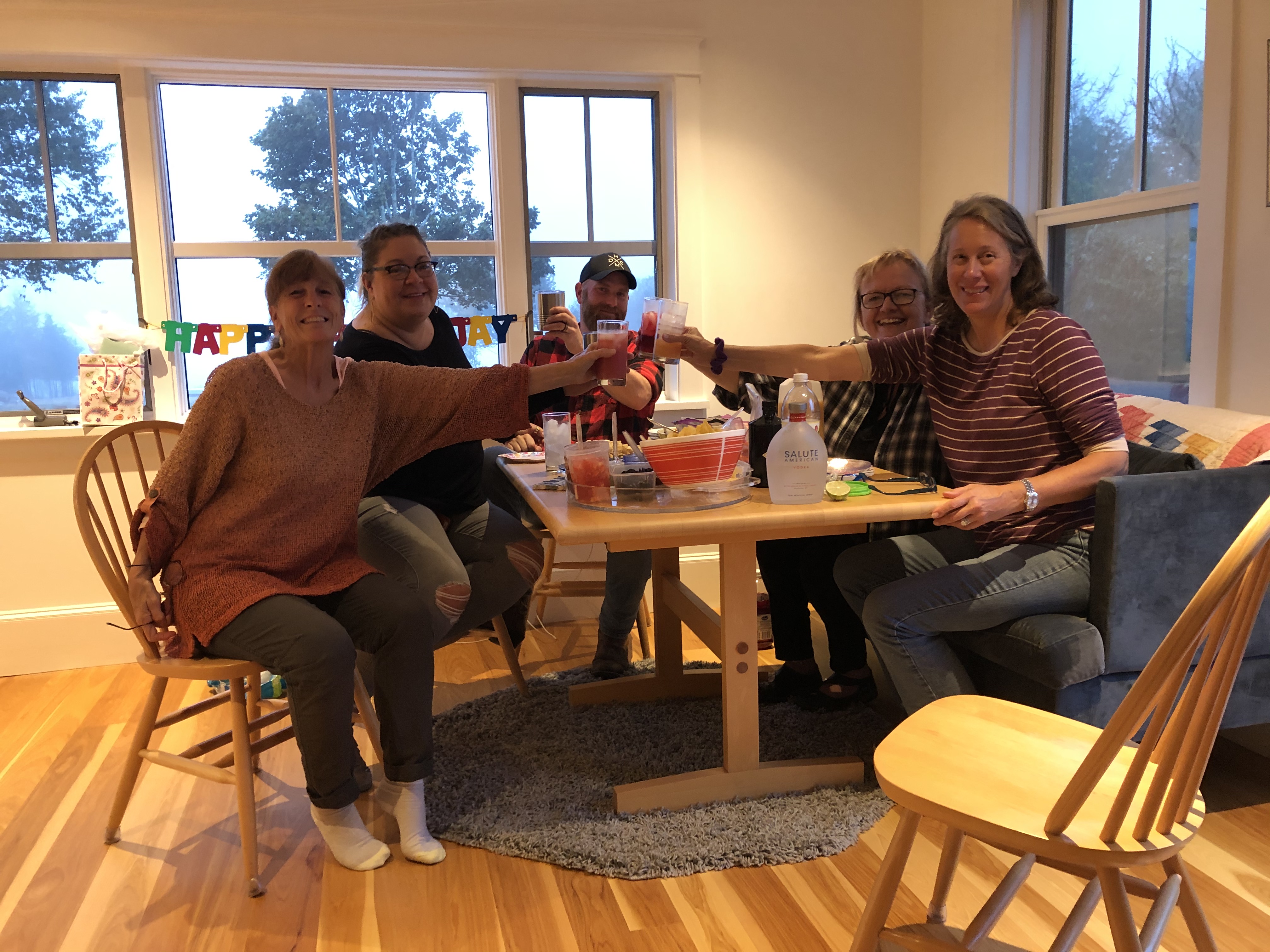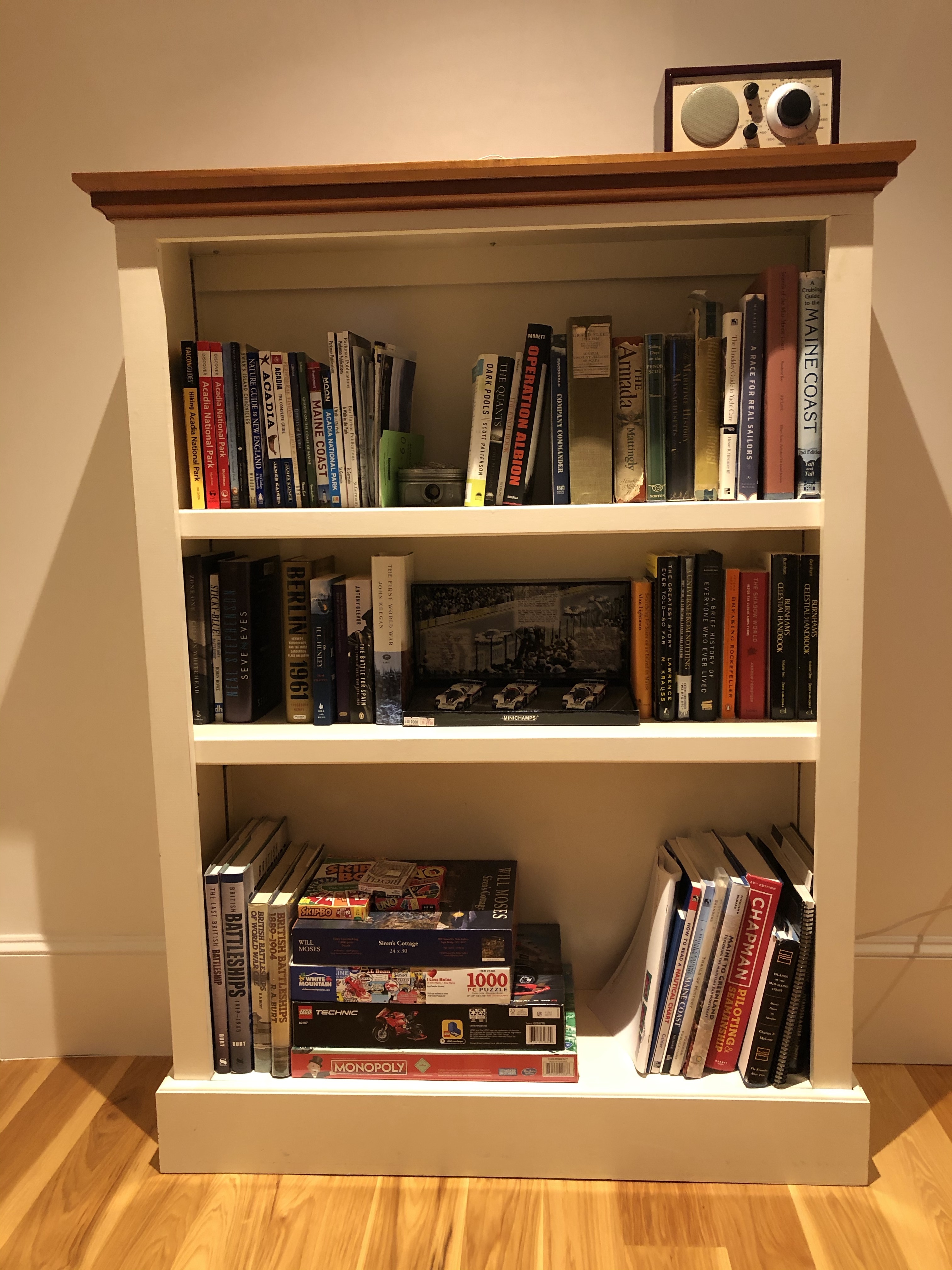 Evening view of living room sitting area.View from sitting area out back window to Eastern Passage, Placentia island and mountains of Acadia.Bookcase has a variety of books about coastal Maine history, trail guides and history for Acadia National Park as well as a small selection of board games, puzzles and a Lego Ducati V4R kitPorsche 911 RSR for rainy days.This hutch solves some of our limited storage. If you can't find something, check in here.Mix of art and function with a 65" OLED TV framed by an ash table from the artist Gail Fredell, entitled Spud Point. Woodstove in use. It doesn't take much wood to heat the place.....