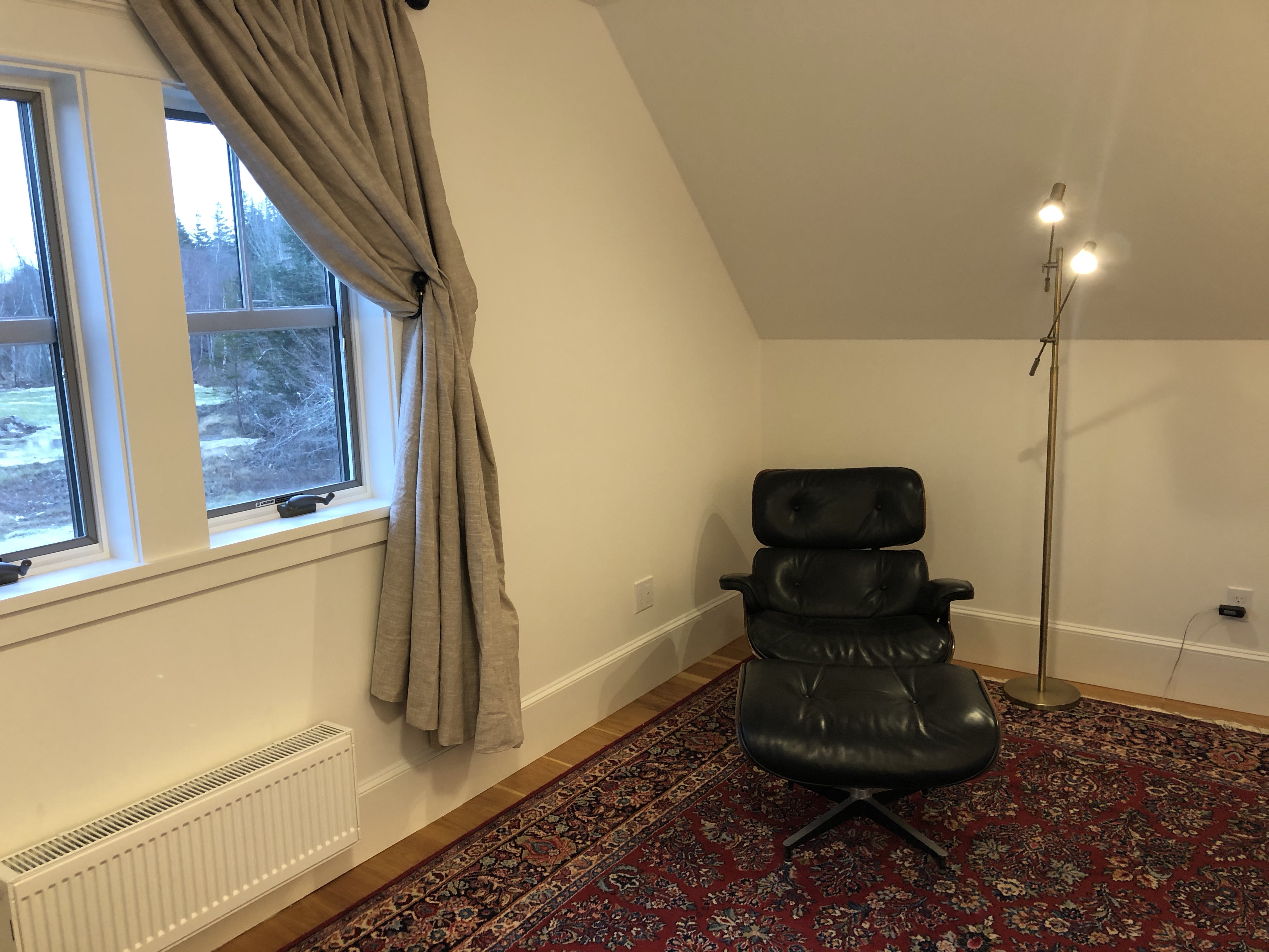 Peek into the master bedroom.Waking up view of the Eastern Passage and Placentia Island.Original Eames chair and oriental rug, both family heirlooms with a new home.Built in reading lights!