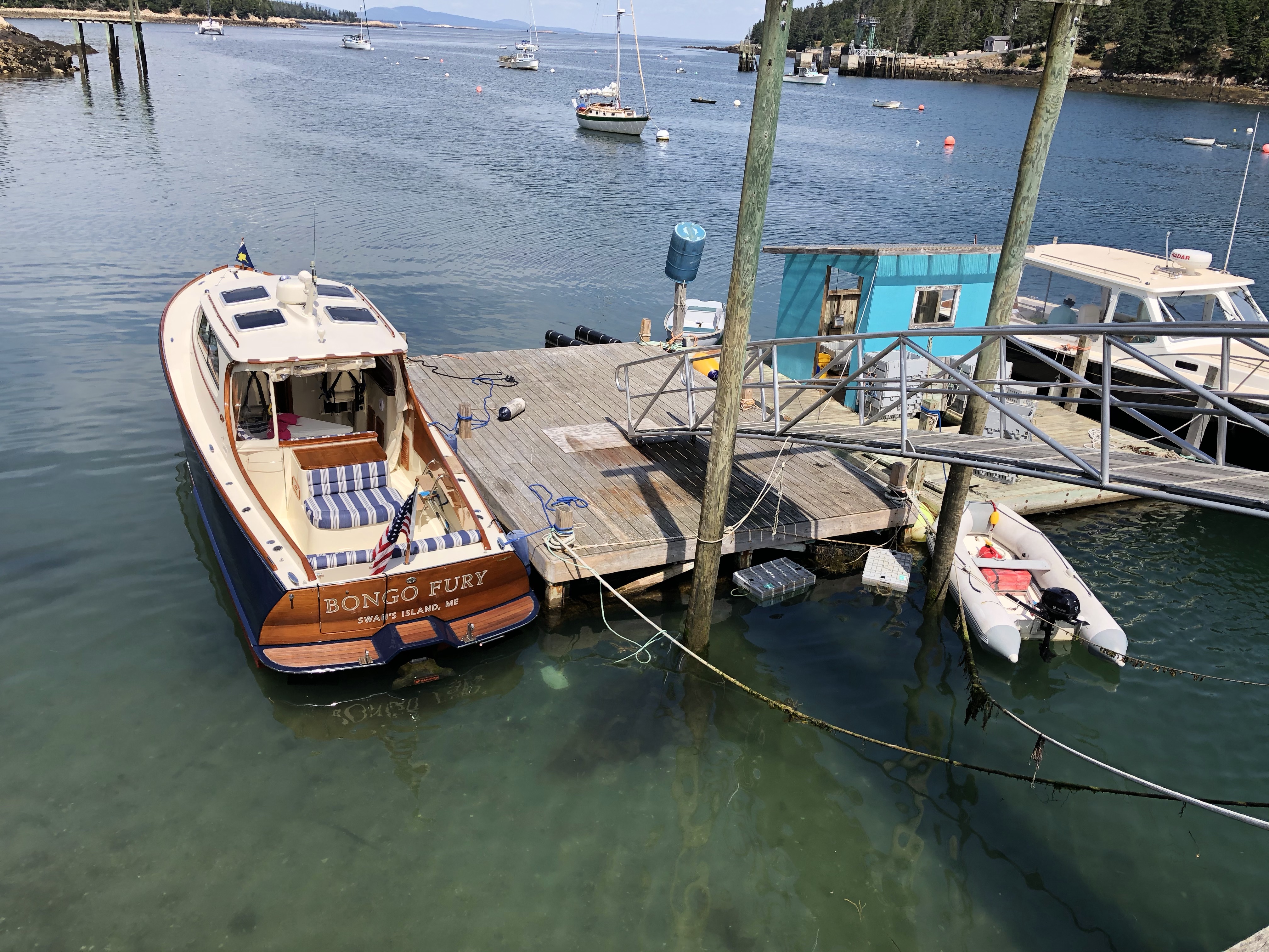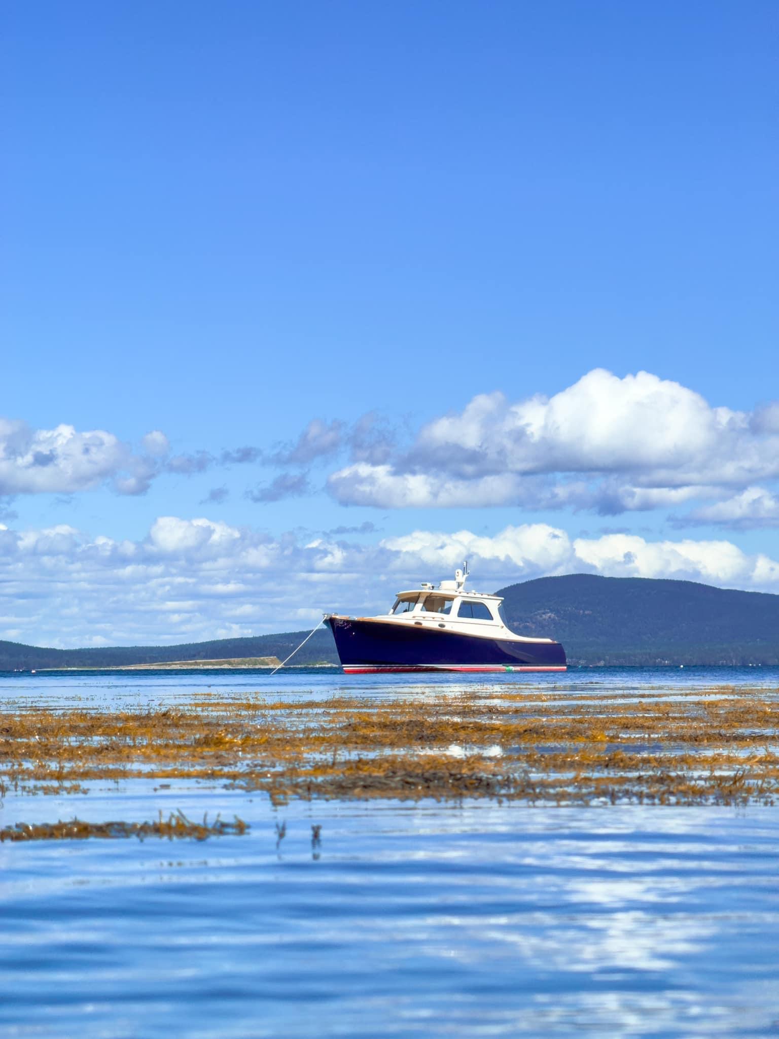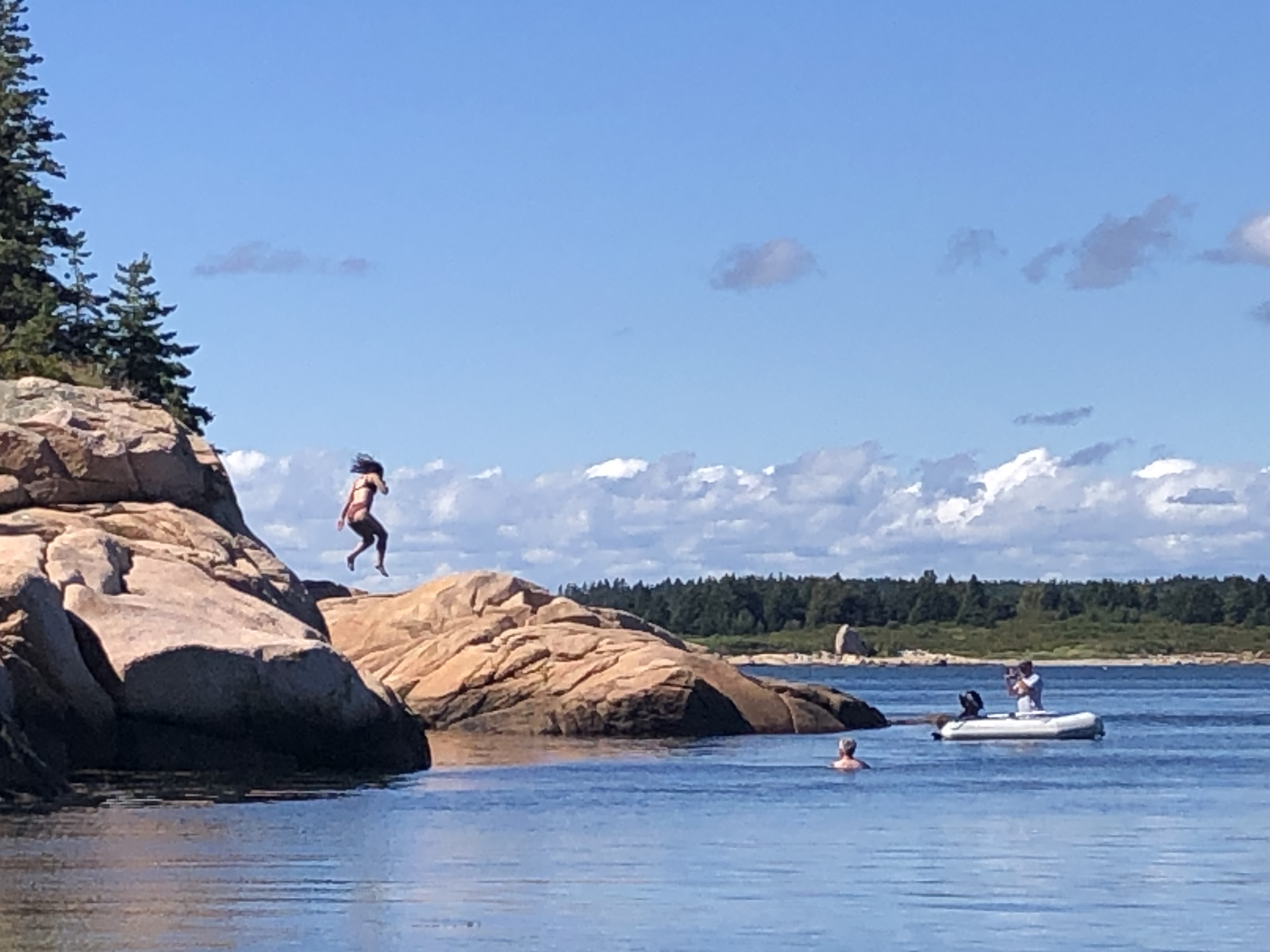 A small island on the western edge of Mackerel Cove with a viable beach area that provides a close, private location for an afternoon at the beach as well as great views back to Mt. Desert Island. At only 1.5 miles from the ferry terminal/dinghy dock it can be reached using the AB tender.