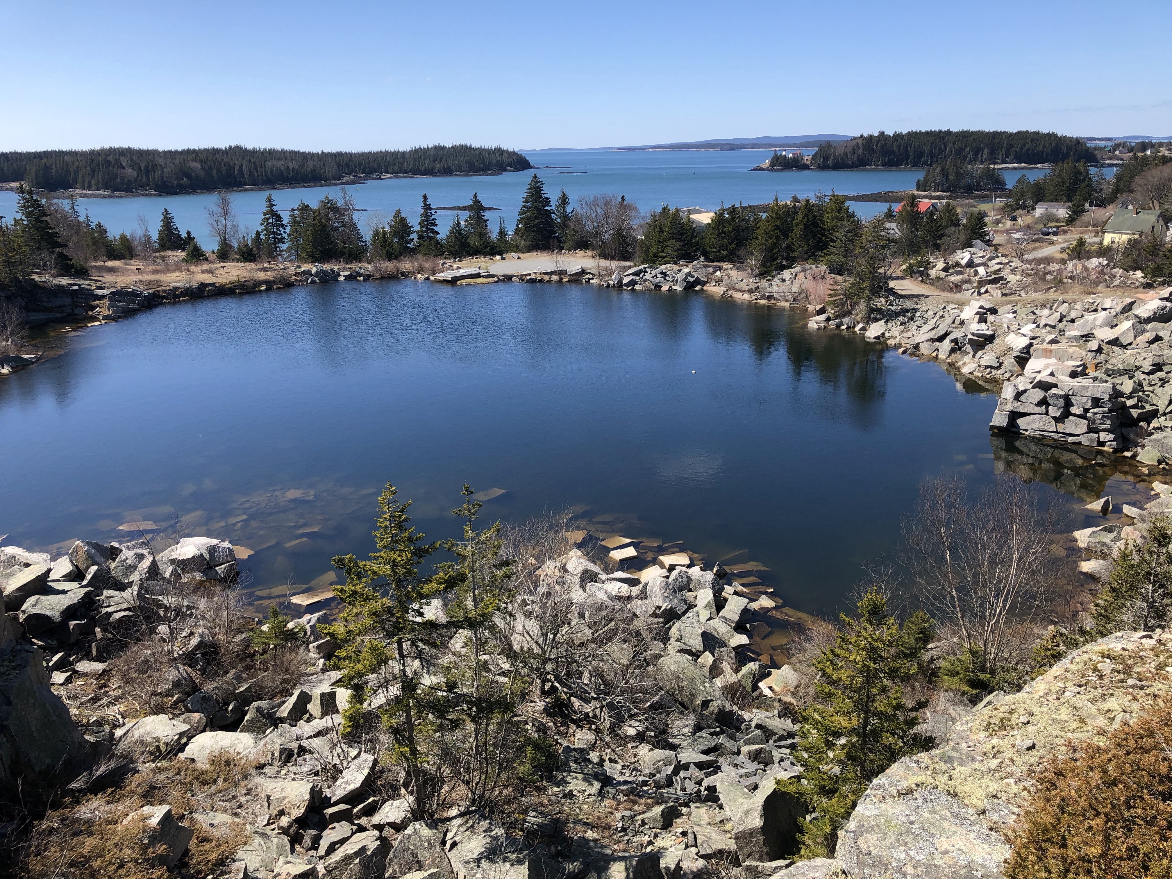 Swan's Island has many trails to hike. In some ways they are are a microcosm of the trails of Acadia with you being able to find woodland trails, bold waterfront vistas and hilltop views all in a compact space. They cross a mix of public and private land so please be considerate on your hikes. Many trails are mapped here but some some are not. Notably, the Noah's Ballast hike , the Blue Rock trail and the shortcut down the power lines to the ferry terminal are not. The Quarry has a few short trails around it that access some remarkable views of the harbor and islands to the west and south.