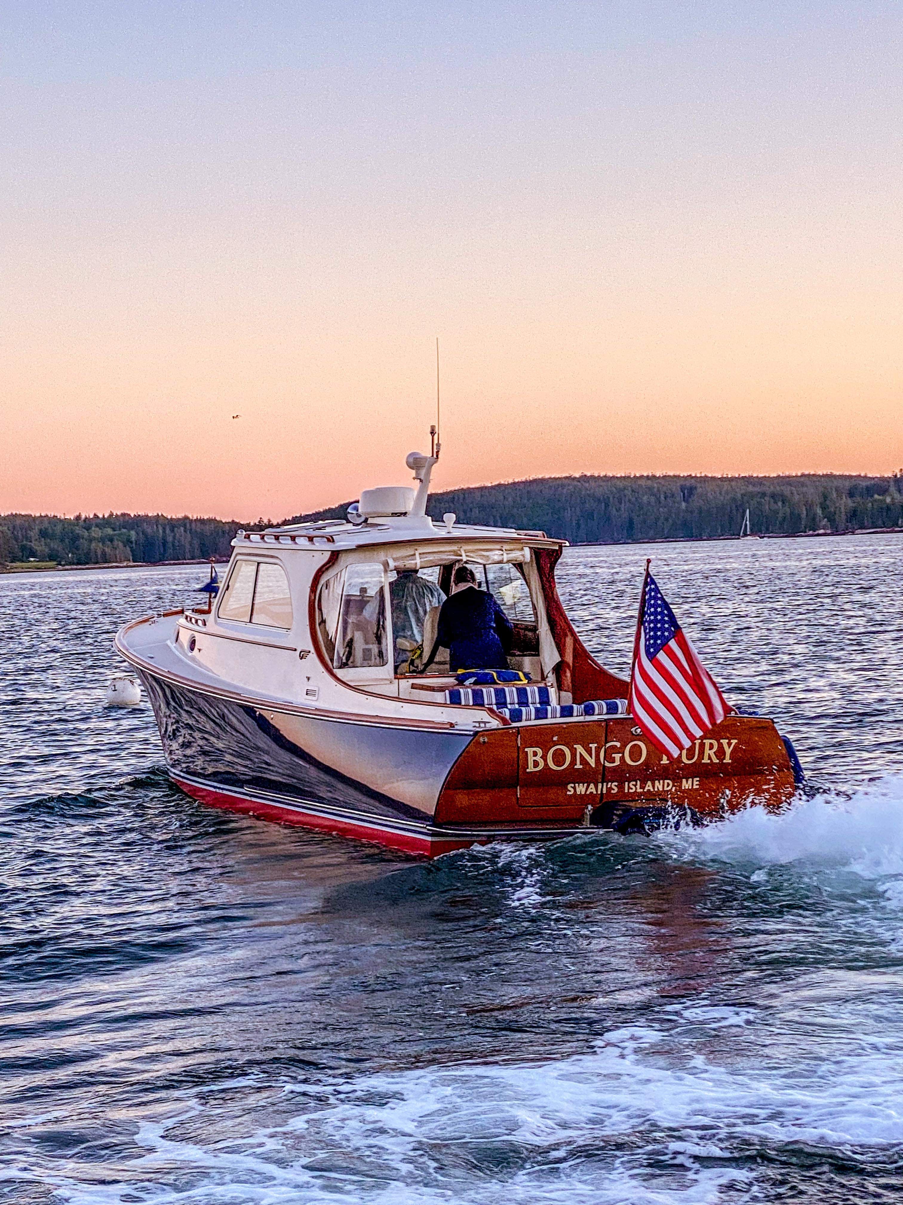 M/V (Motor/Vessel) Bongo Fury is the power boat we have on the island. During the boating season(end of May to early October) it is moored in Mackerel Cove on Swan’s Island. In the off season it is tucked away in a warm Hinckley shed for the winter, across Blue Hill Bay on Southwest Harbor).