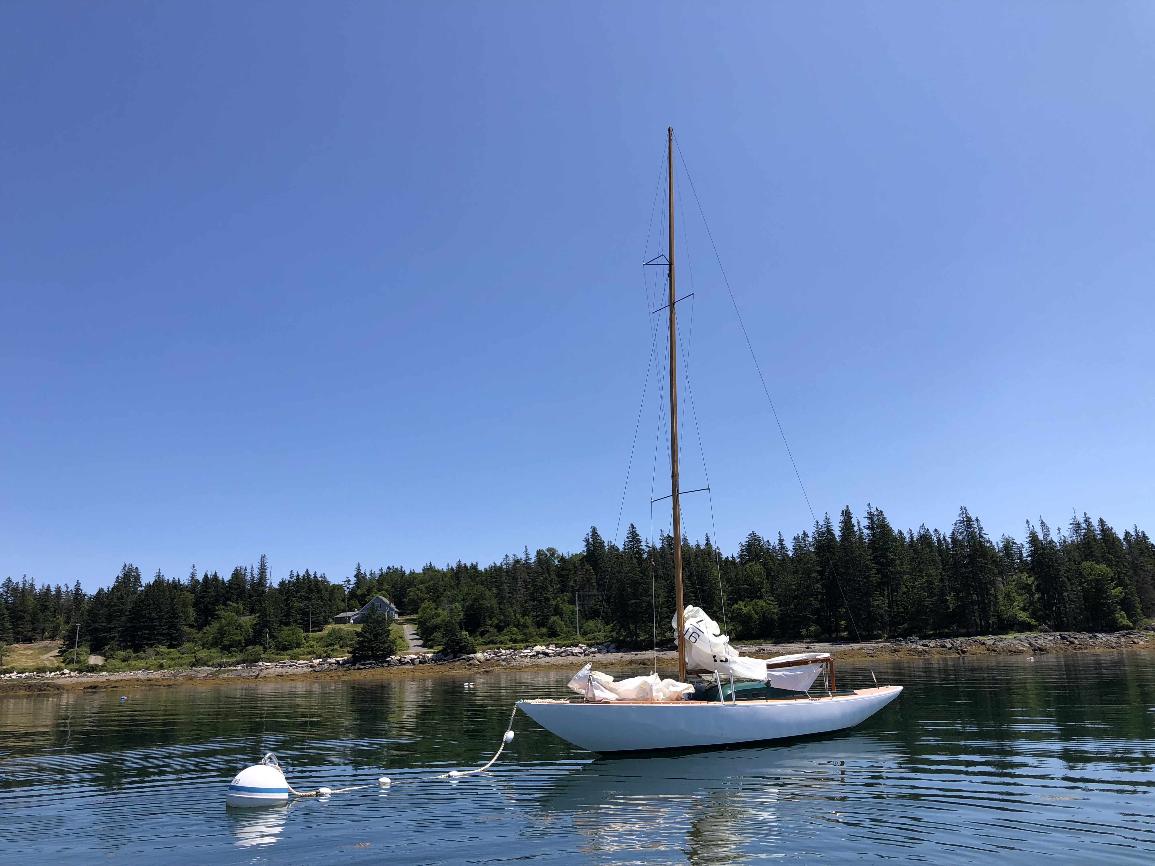 S/V (Sailing/Vessel) God's Pocket is a sail boat we keep on a mooring in Mackerel Cove. It is a Luders 16, a wood boat built in 1947 that was one of the original group delivered to Somes Sound when completed 75 years ago. She was extensively restored by Elk Spar and Boat Shop by her prior owner. With a 26' deck there is enough space to accomodate 4 people for an afternoon sail. An afternoon breeze (usually southwest) can be counted on most days.