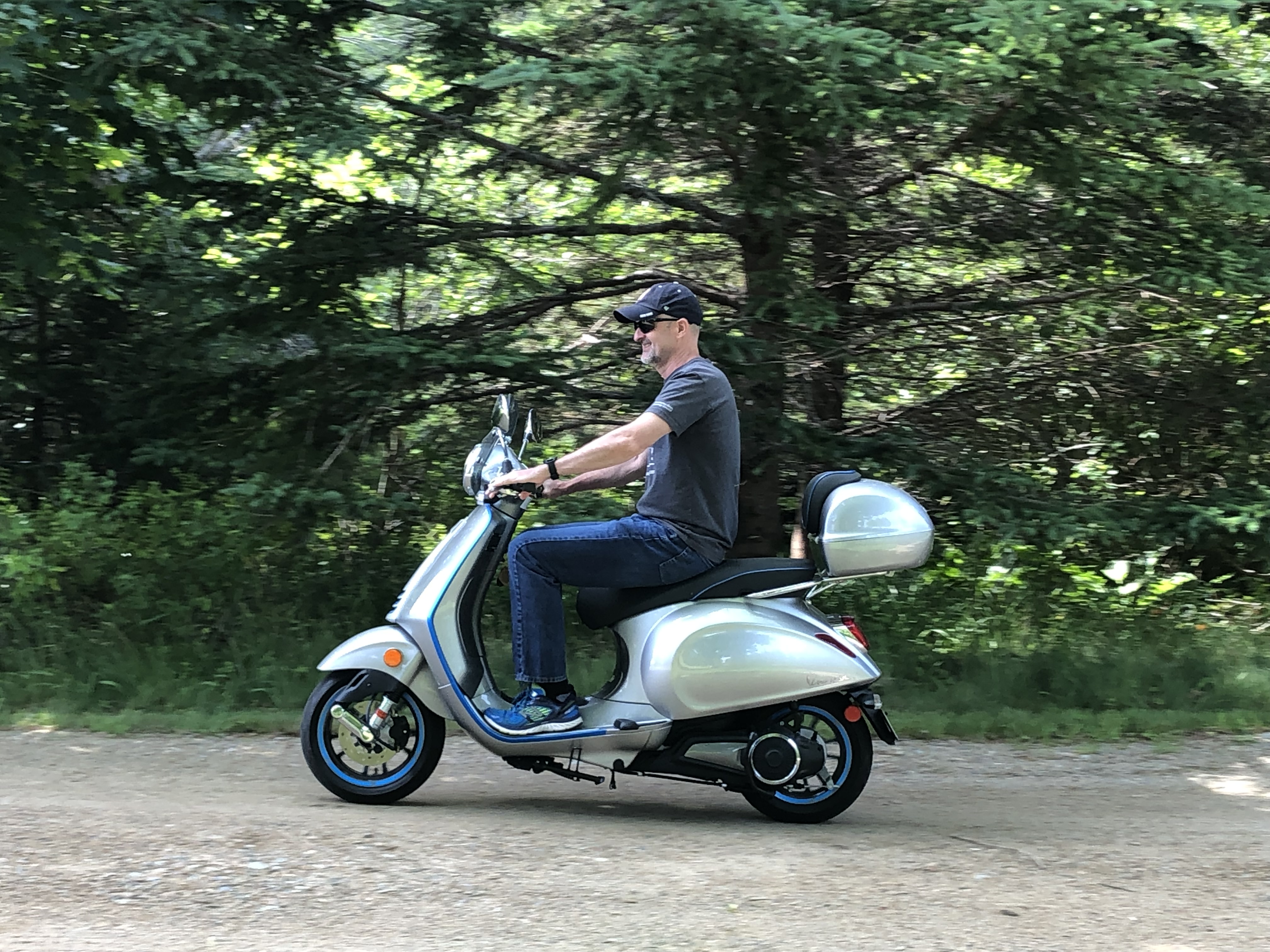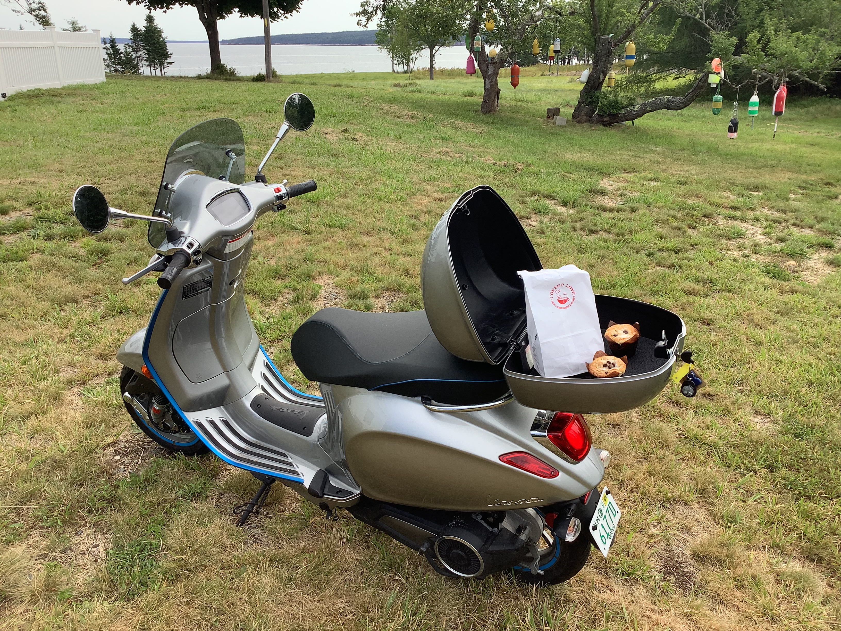 We also have a Vespa Elettrica on the island, an electric scooter. This will be more readily ridden than a motorcycle, with a max speed of 30mph for leisurely rides around the island. It is referred to as the "UMTV" (Utility Muffin Transport Vehicle).