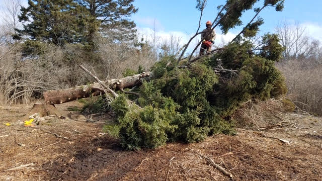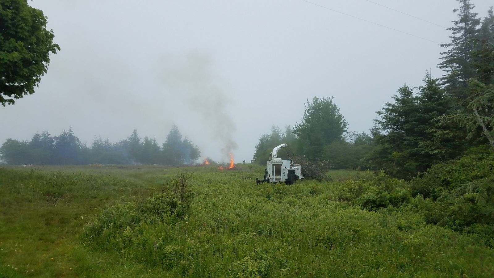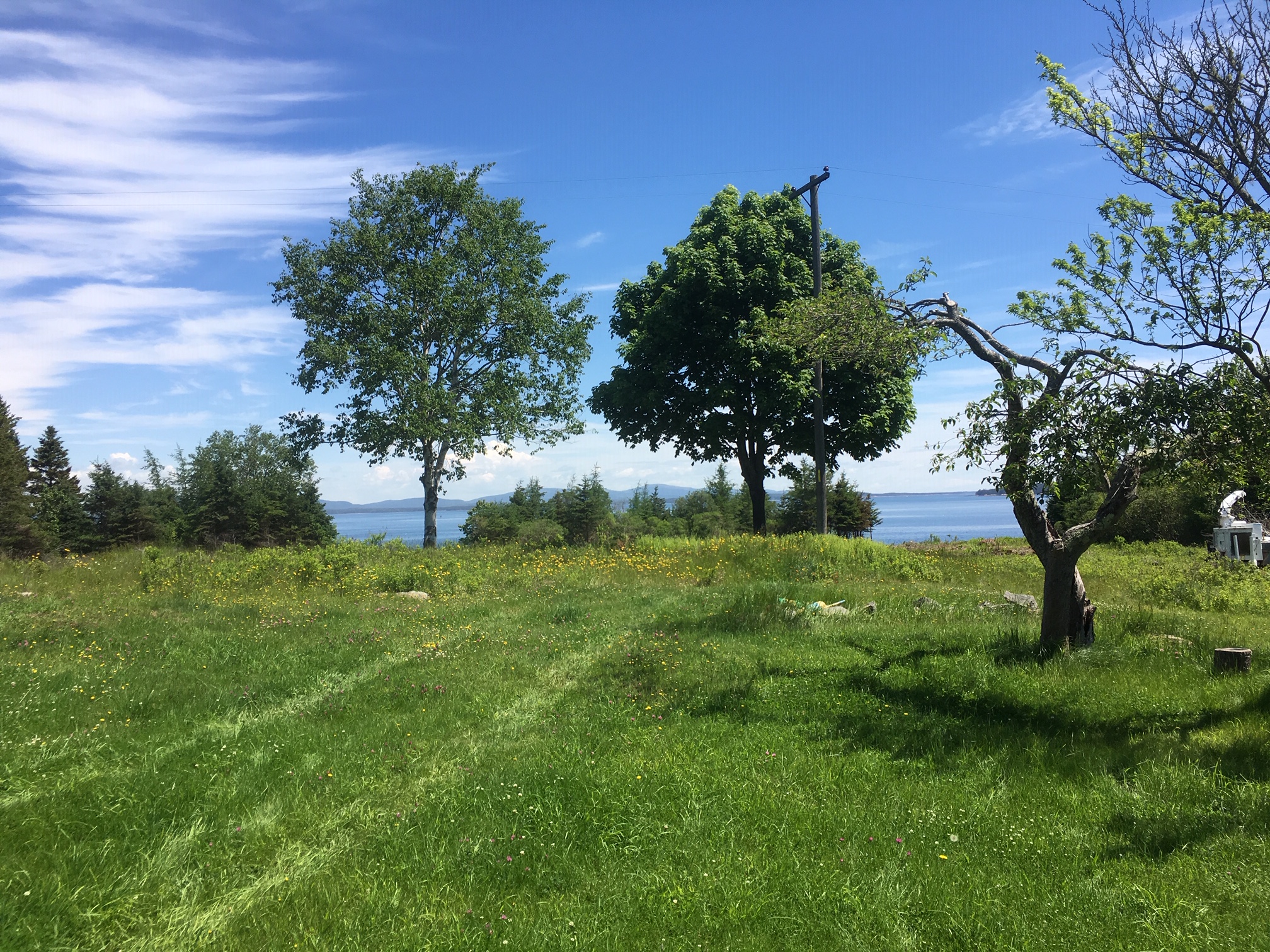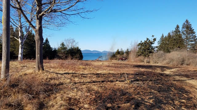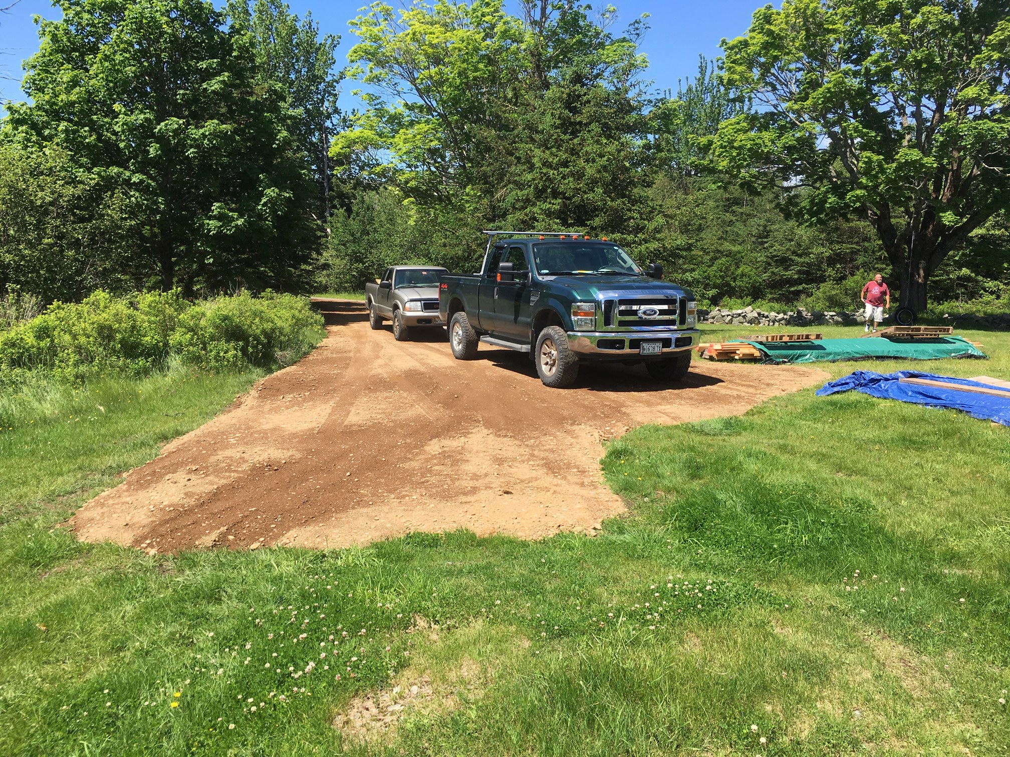 Clearing out spruce trees, leaving hardwoods.Hauling out the spruces.View to the water with grading done.View back to house with grading done.Pulling stumps and moving boulders. The wonders of hydraulics!Finished laying drain pipe from corner of basement to low spot in side woods. No need for sump pump now!Driveway renewal.Post clearing view in JuneBrush burningBrush chippingTrees coming down!Scorched earth clearing.View of Acadia mountainsView from deck, prominent birch treeAlong the "beach"